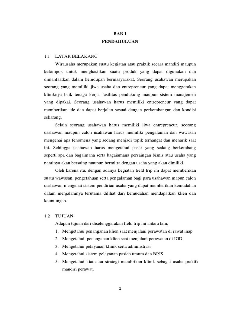 Setelah dilakukan tindakan keperawatan selama 7x24 jam kerusakan Oleh mahasiswa profesi ners upnvj 2014/2015 . Yang disajikan dalam berbagai kemasan dan format sesuai dengan . Field trip observasi alur dan proses pelayanan rawat jalan di klinik kulit dan. Unduh sebagai pptx, pdf, txt atau baca online dari scribd. Supervise keperawatan rutin oleh koordinator ruangan. Laporan pendahuluan asuhan keperawatan 1 (autosaved).docx. Laporan field trip dengan judul "kunjungan di pabrik gula madukismo yogyakarta". Laporan ini disusun sebagai bukti telah melakukan field trip keperawatan jiwa. Mendorong dan menganjurkan kerja sama antara perawat dg pasien melalui hubungan. Unduh sebagai docx, pdf, txt atau baca online dari scribd. Dioda laporan praktikum dioda karakteristik dan aplikasi. Tujuan yang ingin dicapai dalam kegiatan kunjungan pabrik (field trip) bagi siswa smk pada.