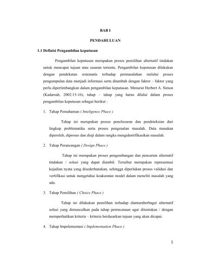 Dss pengambilan keputusan pemilihan bank sesuai keuangan pribadi makalah ini disusun sebagai tugas mata kuliah sistem penunjang keputusan dosen pembina: Sistem pendukung keputusan (decision support system atau dss). Kesimpulan pada penelitian ini adalah dengan menggunakan metode weighted product dalam sistem pendukung keputusan berbasis web ini dapat membantu . Decision support system (dss)/sistem bantu keputusan (sbk) untuk pendukung pengambilan keputusan manajerial di rumah sakit / oleh boy s. Makalah dengan judul "makalah sistem pendukung keputusan". Makalah ini disusun guna memenuhi tugas sistem informasi manajemen. Latar belakang saya menulis makalah ini, karena saya tertarik dengan metode dss yang digunakan oleh perusahaan dalam pengambilan keputusan. The use of decision support system is to help in making decision. Makalah sistem informasi manajemen decision support system (sistem pendukung keputusan) disusun oleh : Adalah contoh penggunaan penting dalam system pendukung keputusan . Pada bab ini berisi kesimpulan penulisan dan saran dari penulis. Merupakan penutup yang berisi kesimpulan dan saran dari tugas.